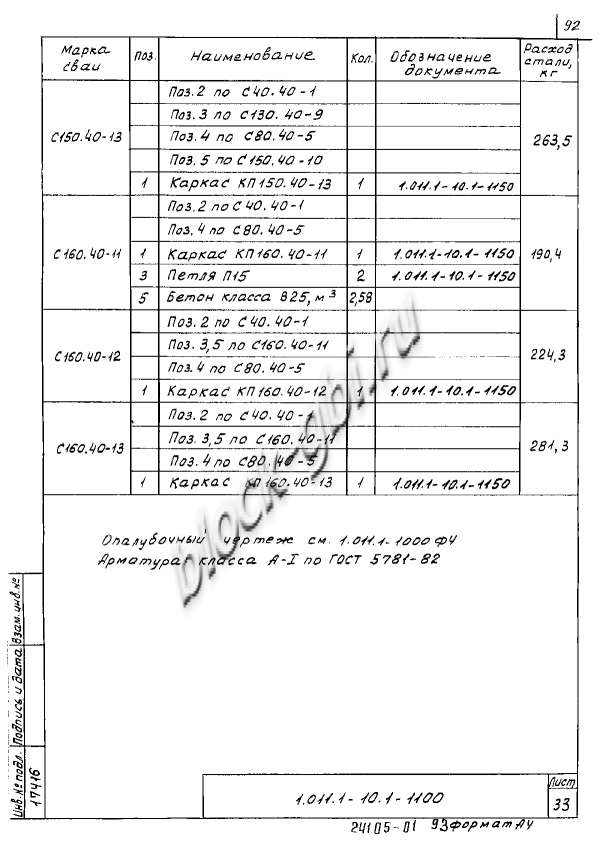 Строгие требования предъявляются и к рабочей арматуре изделий. Расстояние от крайнего поперечного стержня до конца каркаса и расстояние от крайней сетки до торца сваи железобетонной С 160.40-12 общестроительные забивные с ненапрягаемой арматурой не должны превышать 10 мм. Шаг спирали, хомутов и сеток